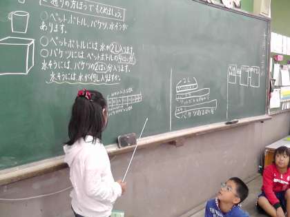 算数では,あまりのあるわり算,そして,『何倍でしょう』の学習に進んでいきます。