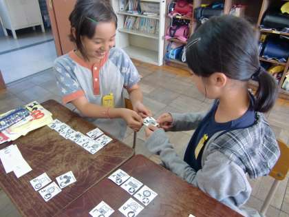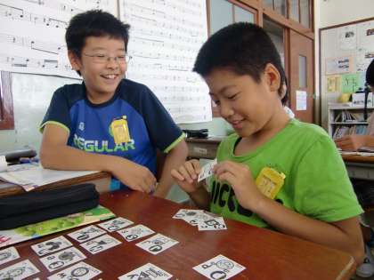 チャンツを歌いながら,尋ね方や答え方に慣れ,そのあとに相手に欲しいアルファベットのカードを尋ねたり,それに答えたりする活動をしました。