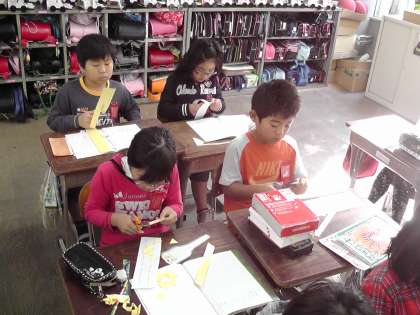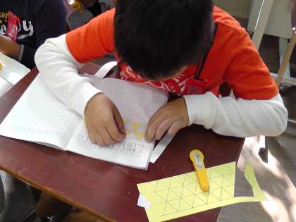 算数の学習で三角形を敷き詰めてノートに貼りました。