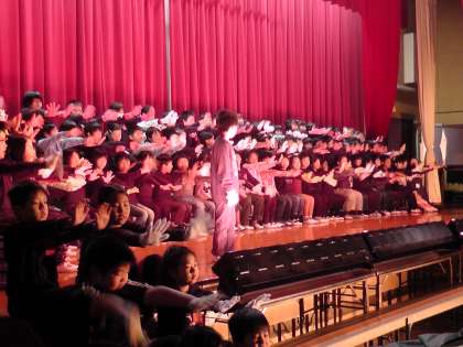 今日は1時間目は多目的室で,2時間目は体育館で学習発表会の練習をしました。