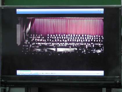学習発表会での3年生の発表をビデオで見ている様子です。