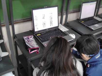各クラスパソコンを用いて京野菜の種類や数など調べています。
