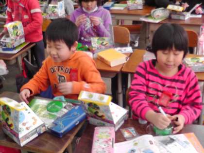 実験で使う磁石を手にし,とっても喜んでいる子ども達でした。