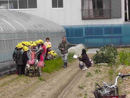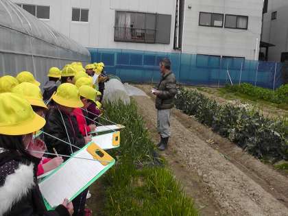 子ども達は事前に聞きたい内容を考えていきました。そして,実際に,畑でも気になったことを聞かせていただきました。
