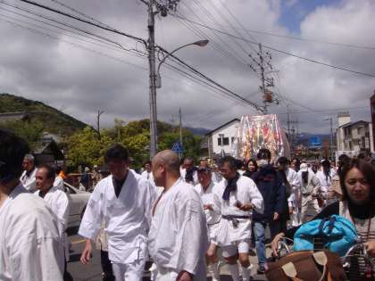 還幸祭は,朱雀御旅所で祭典を行い,七条通りを西に進み,西京極,梅津を経て松尾大社へ還幸されます。