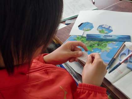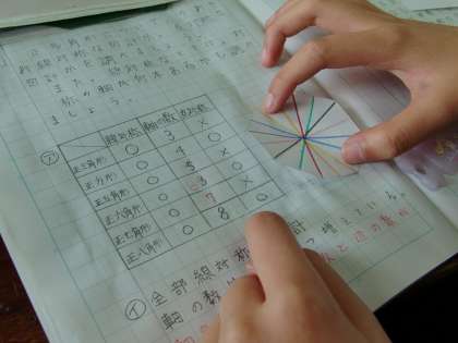 図形を見るだけではどこに対称の軸があるかがわからなかった子どもも,実際に手を動かして探してみることで,「あ,ここにも対称の軸があったんだ。」と気付くことができました。教科書とノートだけの授業にならないように,活動を取り入れながら楽しく進めていきたいと思っています。