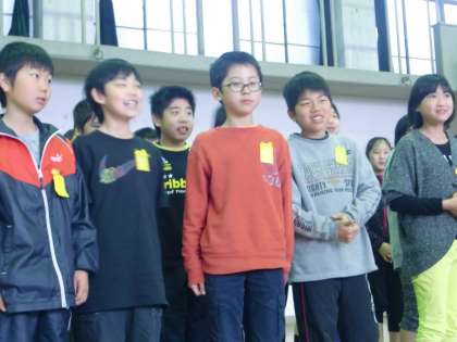 一年生を迎える前まであとわずかになりました。今日は,朝会後の少しの時間を使って,歌と言葉の練習をしました。また,タンバリンやスズを入れ,よりリズミカルに歌えるようにしました。練習始めは周りの様子を気にしながらだったようですが,何回か歌っていくうちにテンションも上がっていき,明るく元気良く歌えるようになっていきました。教室に戻ると「あ〜,楽しかった!」という声も聞かれました。