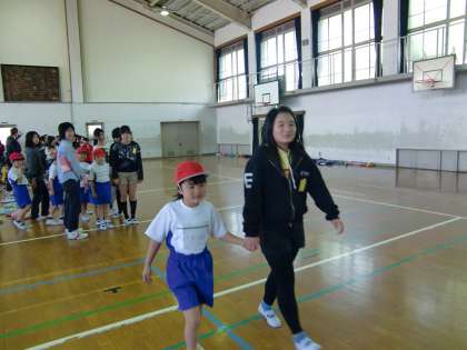 明日の3時間目は1年生を迎える会です。今日は,1年生との合同練習を行いました。6年生が1年生の手を繋いでステージまで連れて行く練習です。1年生の歩幅に合わせてゆっくり歩いたり,視線を合わせてお話をしたり,優しく接している姿が見られて微笑ましかったです。