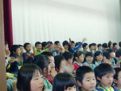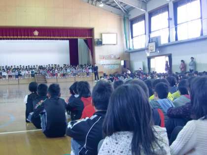 歌のプレゼントの時には,練習以上に楽しそうな表情で歌うことができていました。一年生も笑顔で一緒に手拍子をしてくれました。6年生の子どもたちにとっても満足のいく一年生を迎える会になったと思います。