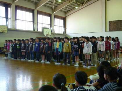 5年生全員の声が体育館に響きました。力強い子ども達の声にやる気を感じた担任でした。
