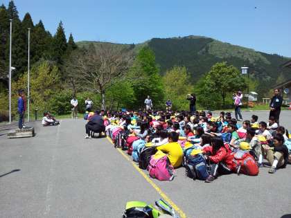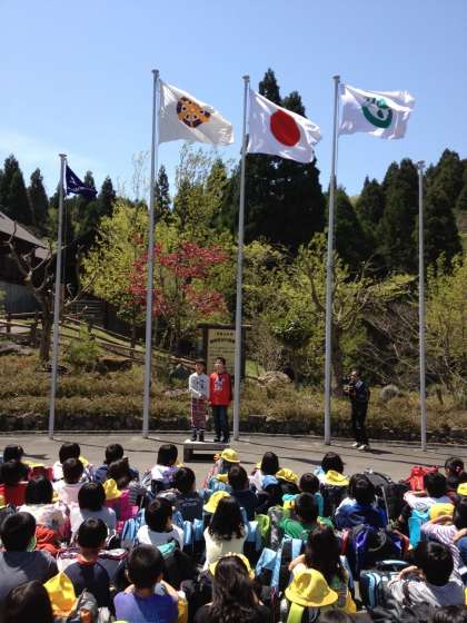 無事,花背山の家に到着し,すぐに入所式です。
