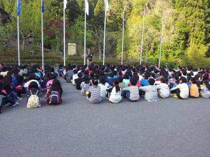 7:00から,「朝のつどい」をします。西京極小学校の学校の紹介をします。