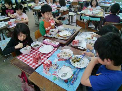 食の学習は2年2組。給食時間も,くちびるをとじながらよくかんでたべられていました。給食時間にスピーチ発表もあり,あたたかい雰囲気の給食時間でした。