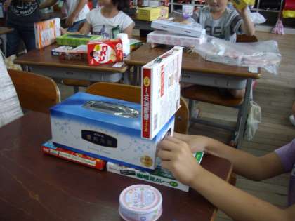 子ども達は,楽しんで生き生きと活動していました。実際にものを使うことで,「はこの形はつみやすい。」「丸い形はつめない。」など立体の特徴をはっきり捉えることができました。ご準備いただきありがとうございました。