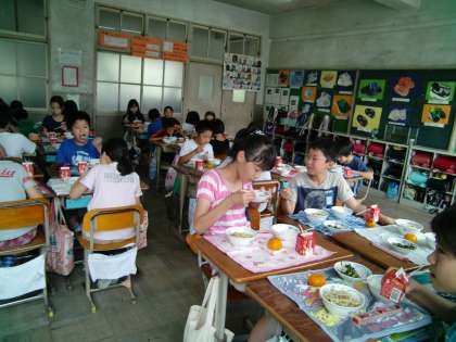今日の給食は,減量ごはん・牛乳・カレーうどん・かまぼこと小松菜の炒め物・みかんでした。今年初めての冷凍みかん。6月,7月の期間限定デザートを一房一房,大事にいただきました。