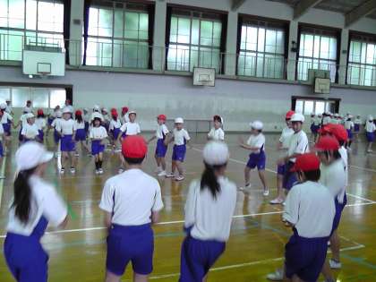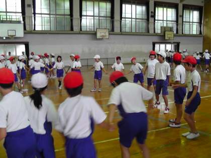学年合同で行う練習に,子ども達はとても楽しんで取り組んでいます。初めは男女で手をつなぐことに少し抵抗があった様子も見受けられていましたが,男女仲良く協力して行う事ができています。