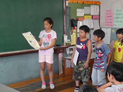 作った物をクラスに持ち帰り,みんなに発表しています。