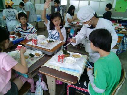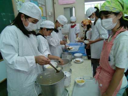 その後,陶器の食器で給食をいただきました。いつものようにおいしく給食を食べている子ども達でした。