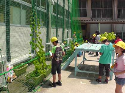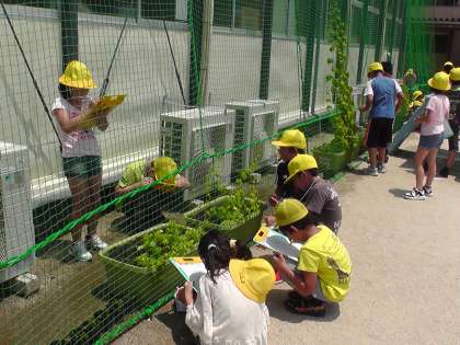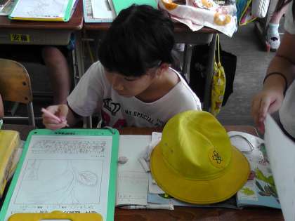 子ども達は,葉の形やすじ,つるの伸び方など,よく観察して記録しています。