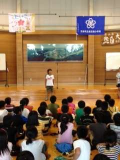 そして,入所式です。「みさきの家」のプレーホールに「西京極小学校の旗」が揚りました。