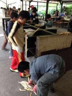 到着が,少々遅れましたが,野外炊事をがんばっている写真が届きました。暑い中での野外炊事が,またとんでもなく暑いのです。汗を流しながらの炊事です。