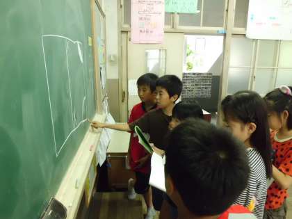 休み時間に相談する代表委員の子ども達。5年生全員が楽しめるようにと考えていました。そして,決定したことを各学級へ連絡していました。