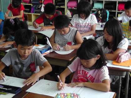 キャンプファイヤー,磯観察,野外炊事・・・などなど,心に残った活動がたくさんあります。それぞれの活動での出来事を振り返り,作文に書いています。