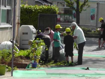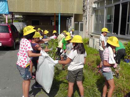 暑さに負けず,一生懸命に雑草を抜きました。「なかなか,抜けない。」と言いながら,精一杯力を出して抜いていました。