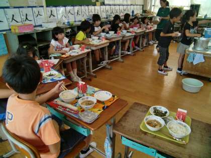 今週は「給食ピカピカ週間」です。おかずのペロリ賞や,食器や牛乳パックの返却についてきちんとできているクラスに給食委員会の児童がサービスホールで賞状を渡しています。給食の準備から片付けまで気持ちよくすごせるようみんなで協力していきましょう。