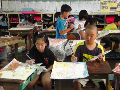真剣な表情で色を塗っている姿に高学年らしささえ感じます。