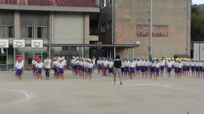 今までは体育館での練習でしたが,今日は運動場でソーランの練習をしました。