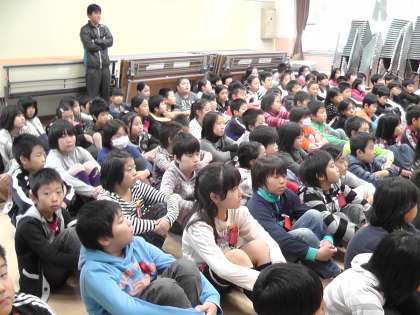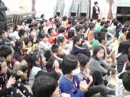 耳が聞こえない・聞こえにくい人は,音が聞こえないので,光や振動などさまざまな方法で,情報を得ます。目覚まし時計の代わりに,枕に振動するものを入れて起きること,お客様が来られた際には,パトライトというライトが光って知らせてくれることなど,さまざまな道具についても学びました。そして,最後にみんなで手話を用いて『大きなくりの木の下で』の歌を歌いました。
