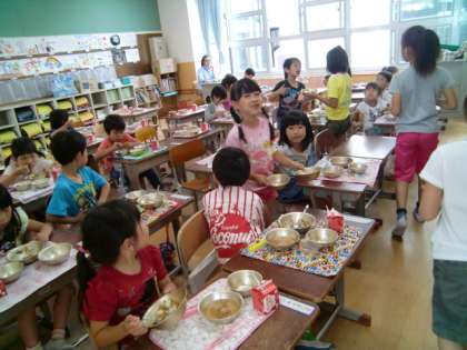 やさしいトマト色をしただんごが,子どもたちに人気でした。