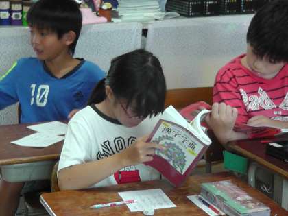 子ども達は,カンジーからの漢字暗号に,意欲的に挑戦しています。すべて解くことができれば,問題づくりにも挑戦しています。