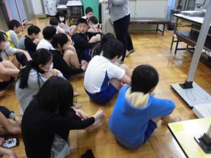 計測前には,養護の小山先生より体を清潔にすることについてお話がありました。