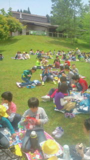 その後は,班で楽しくお弁当タイム。雲の合間から