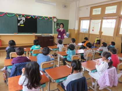 明日から始まる給食に,子どもたちは興味津々です。