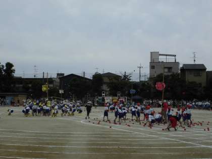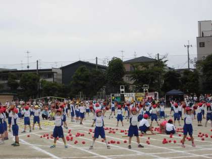 1年「おどろう!いれよう!なかよしパレート゛2016」では, 楽しい音楽に合わせてダンスを踊った後で, 玉入れをしました。