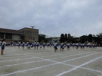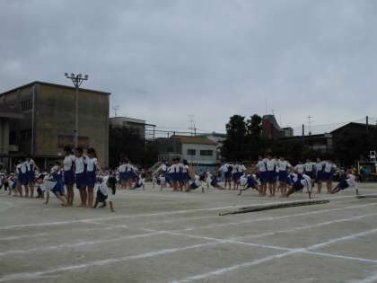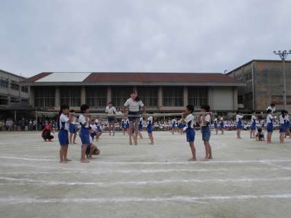 小学校生活最後の運動会となった6年生の演技は, 組体操・棒体操です。当日まで「みんなで技をそろえたい。」「全員で成功させたい。」という願いをもって, 練習に取り組んできました。6年生みんなが心を一つにして, 見事にやり遂げました。