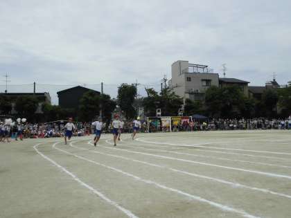 6年生は, 小学校生活最後の走りとなりました。100m走・選手リレーと全力を尽くして走りました。最高学年らしい勇姿でした。