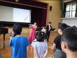 最後に,みんなで「手をつなごう」を歌いました。また,途中の休憩時間にも,間近で楽器を見せてもらったり演奏を聴かせてもらったりして音楽を楽しむことができました。
