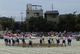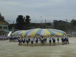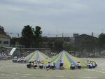 各学年の種目のほかに,ひまわり学級のみんなと3年生とで「バルーン フラッシュ 〜ちはやぶる〜」の演技を行いました。ひまわり学級の子どもたちによる合図で始まり,音楽に合わせてバルーンを上げたり下げたり,揺らしたりしました。また,「テント」「ウェーブ」「ボール」など新しい技も使って4つのバルーンが大きく膨らんだ様子がとてもきれいでした。