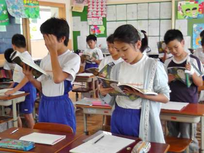 国語の授業で古典の学習をしています。普段なかなか古典に親しむことのない子ども達。