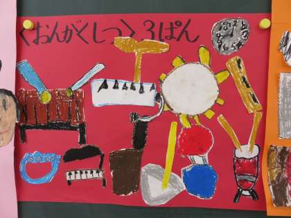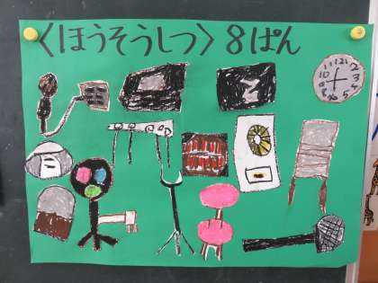学校探検をして見つけたものや人を班ごとにまとめました。まとめながら、「がっき使ってみたいな。」「教頭先生とは話をしたことがないよ。」など話をしていました。