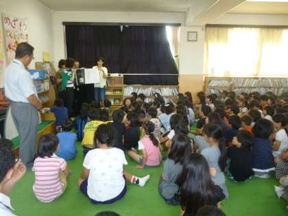 3年生と5年生の児童が図書館に集まり,とっても熱心に聞いていました。このわかば読書週間で素敵な本との出会いがあるよう,機会をつくってくださった図書ボランティアの方々,ありがとうございました。子どもたちは教室に帰ってきて,また読み聞かせ聞きたい!と言っていました。