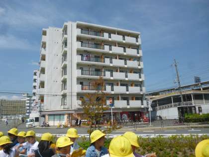 1回目とは違うコースです。まずほほえみ通りを通って阪急西京極駅の前を通りました。駅付近にはコンビニやお店,マンションなどがありました。