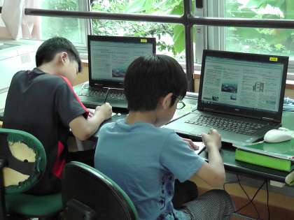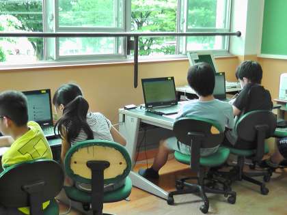 また,教科書・資料集,本だけでなく,コンピューター室にてパソコンを活用して調べる学習も行っています。自分で調べたい物事のキーワードを検索にかけ,着々と調べ学習を進めていました。