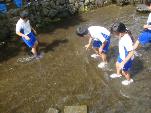 冷たい水は気持ちがいいのですが,その分,岩魚も元気がよく,なかなか捕まってくれません。隅の方に追い込んで捕まえる,というアドバイス通りに頑張ってみるのですが,岩魚の方が逃げ足が速く,ひまわりの3人は2回トライしましたが残念ながらつかむことができませんでした。