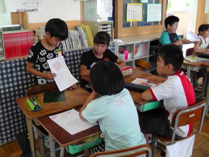 読んだ本の中から友達におすすめしたい本を選んで,絵と文章でおすすめの本紹介をかきました。そして,それを友達と交流しました。