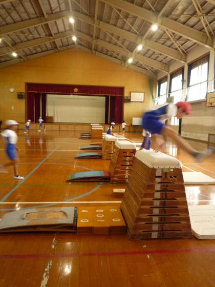 体育館の体育では「とび箱運動」をしています。